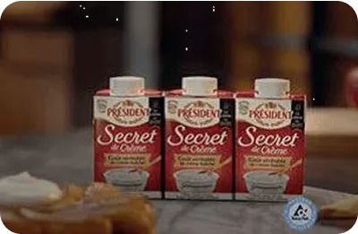 SECRET DE CRÈME Président a réalisé la prouesse technique de combiner les procédés de fabrication des crèmes UHT et de la crème fraîche pour réussir à mêler praticité et bon goût frais. Après 300 recettes testées, la marque a lancé en 2016 Secret de Crème , la 1ère crème en brique longue conservation, qui a le goût véritable de crème fraîche. Une innovation de rupture au service du plaisir, avec un point de différence unique et totalement inédit sur le marché de l’UHT